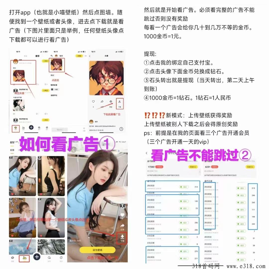 小喵壁纸,下载壁纸看广告赚米,零撸天花板,全新玩法