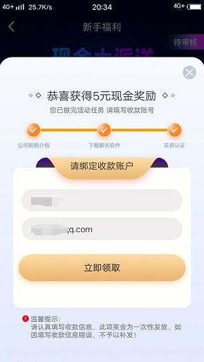 点首页---新手福利---右上角(去领取)----填写支付宝账号即可。