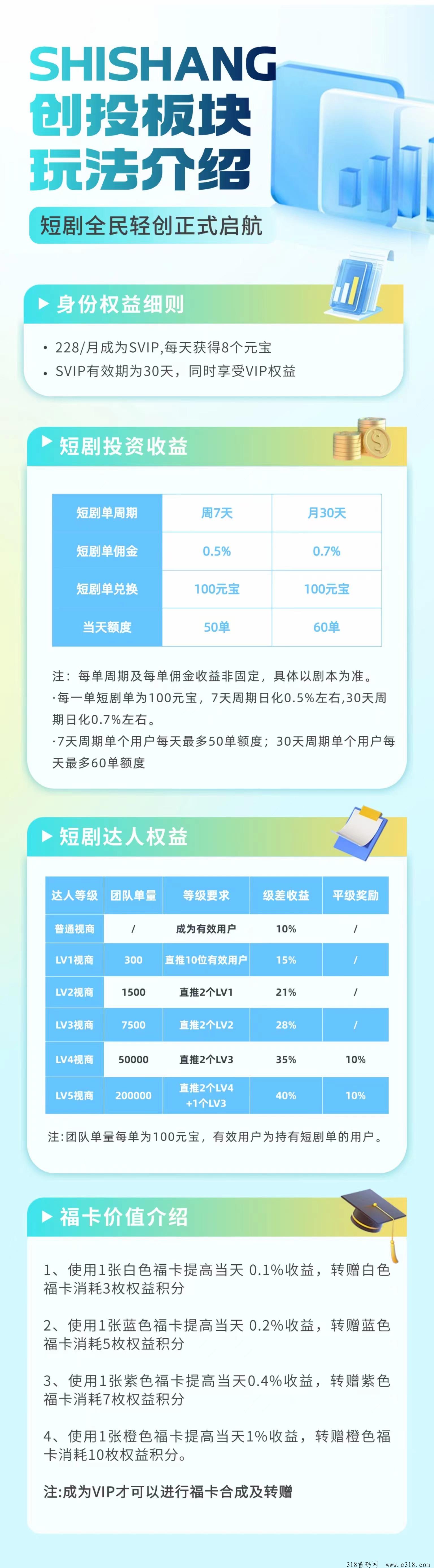 ①参与短剧权益7天的,每天有0.5%的基础收益,每天最多参与5000元宝,7天后投入的数量加收益一起出来。