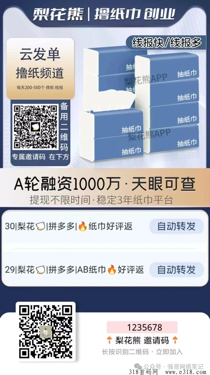 2.手机号注册,填写梨花熊邀请码:1235678(没有邀请码是无法正常使用的)