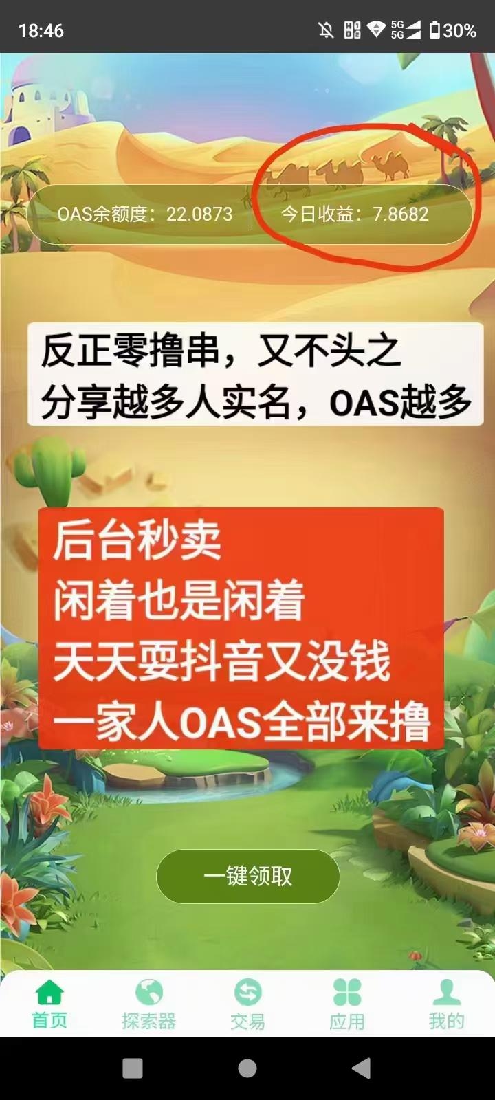OAS,自带交易,目前一币10+,免费送12币的产出