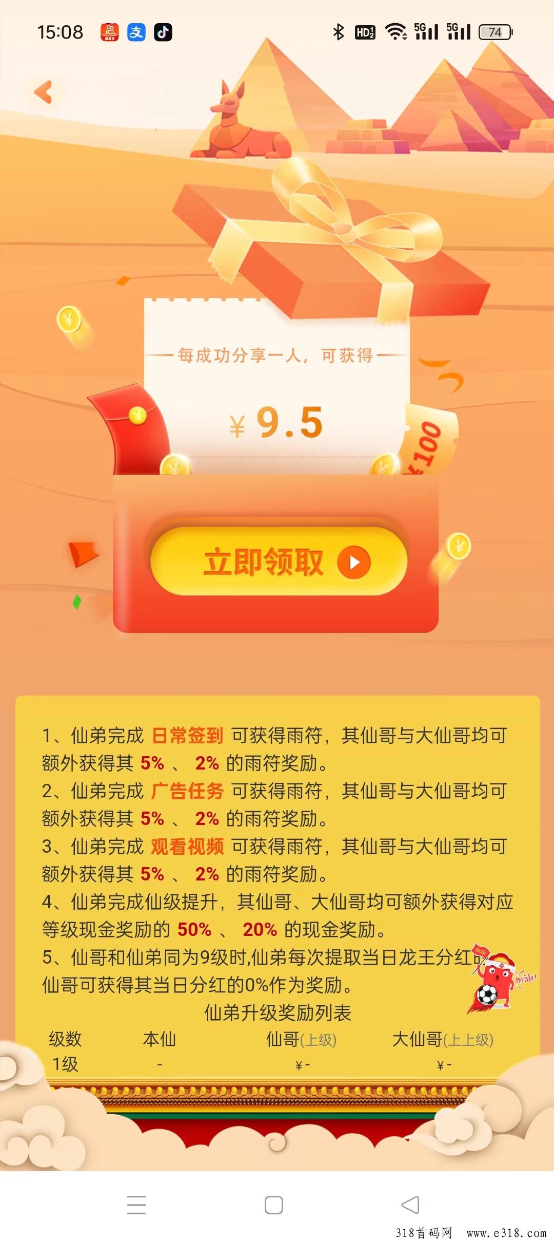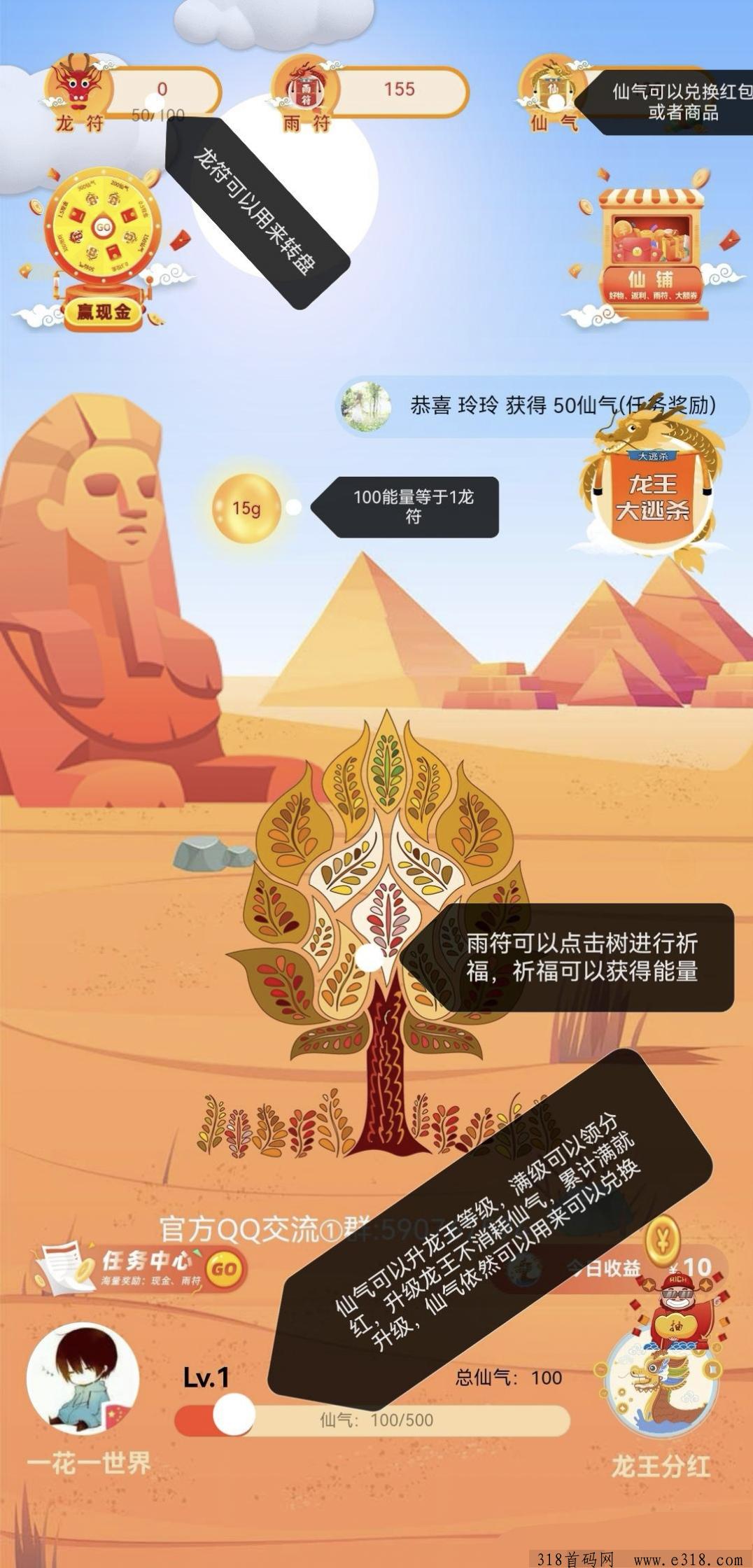 仙气:可以兑换红包或者商品,仙气可以升级龙王等级,升级龙王等级不消耗仙气,也就是说达到一定数量仙气就自动升级龙王等级,9级龙王可以每天芬宏