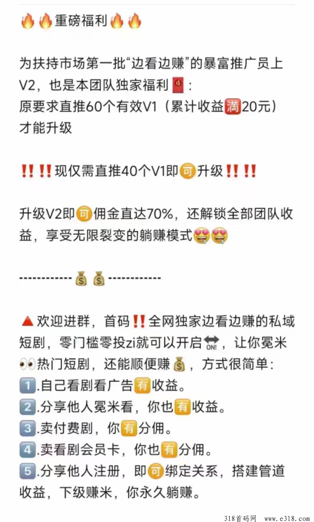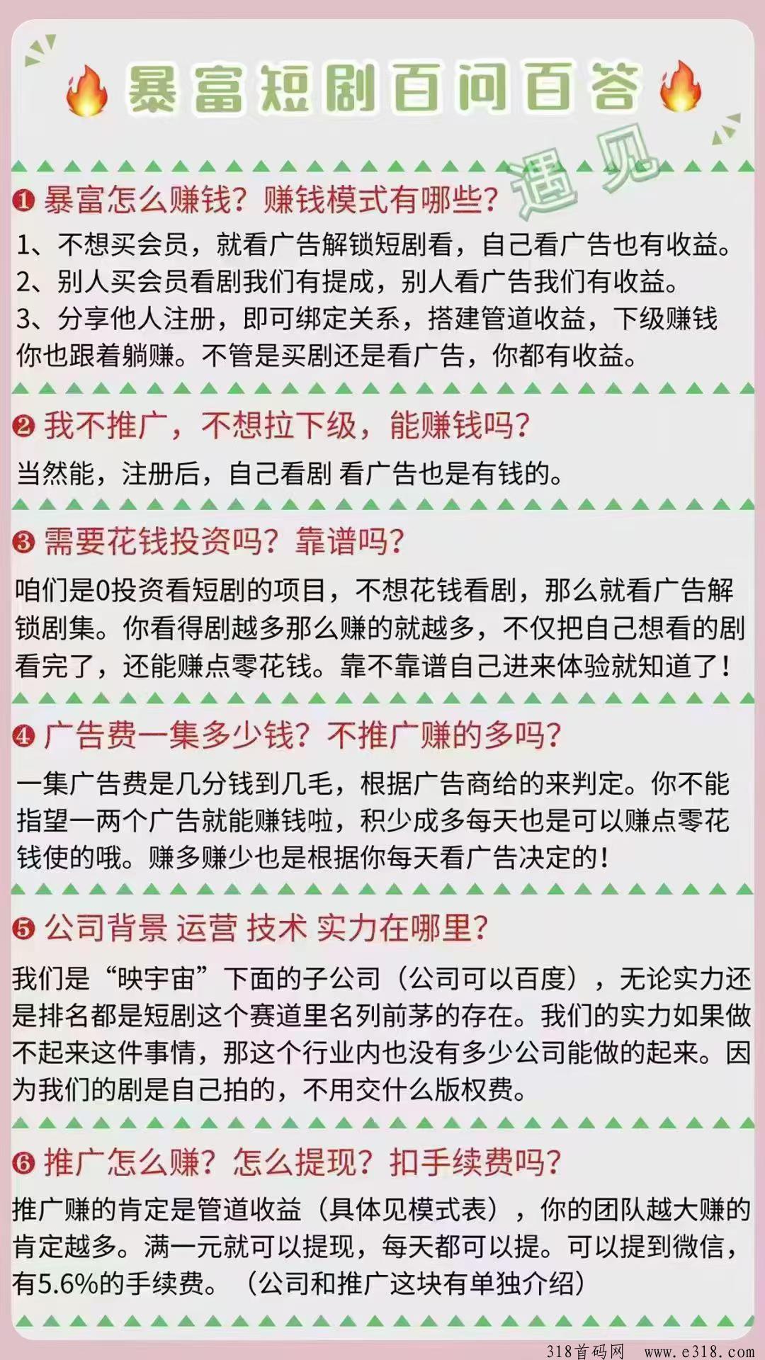 暴富短剧0撸短剧新风口,,边看剧边转钱,做团队裂变速度特别快,长久的靠谱,最新短剧新风口,速度跑马圈地。