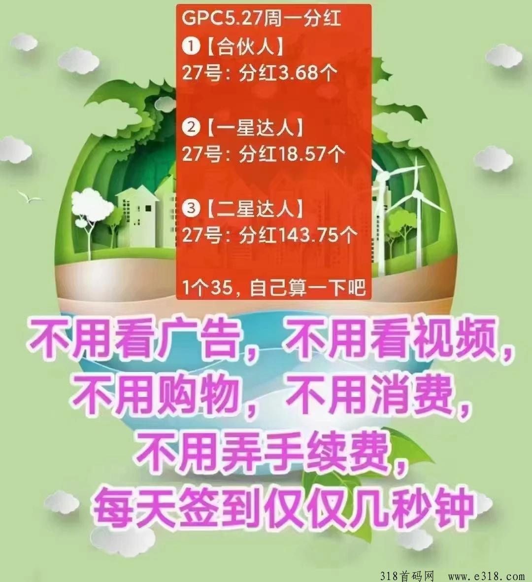 一分钟了解GPC今天给大家介绍一个非常适合零撸的项目,价格现在70+米(不建议投资只适合零撸),目前的零撸神盘--GPC,这个项目类似以前的GEC,以环保为主题的。总体这类还是不错,项目只要玩的人多,慢慢的会跟进来很多人。每天18秒看环保知识,为环境保护做贡献?不看广告视频 不购物消费 每天点几下任务完成支持***支付,GPC环保碧火爆全网?一个碧70+,2018年的趣步,2024年的GPC等你来撸