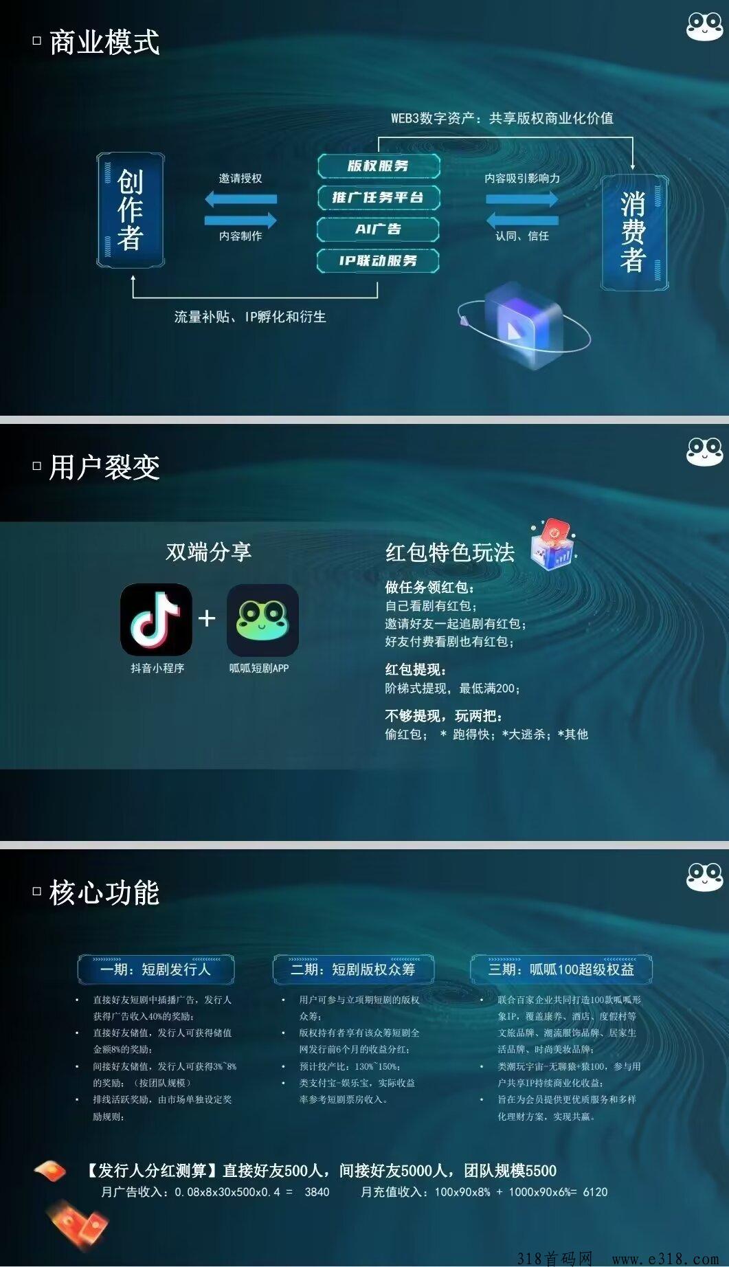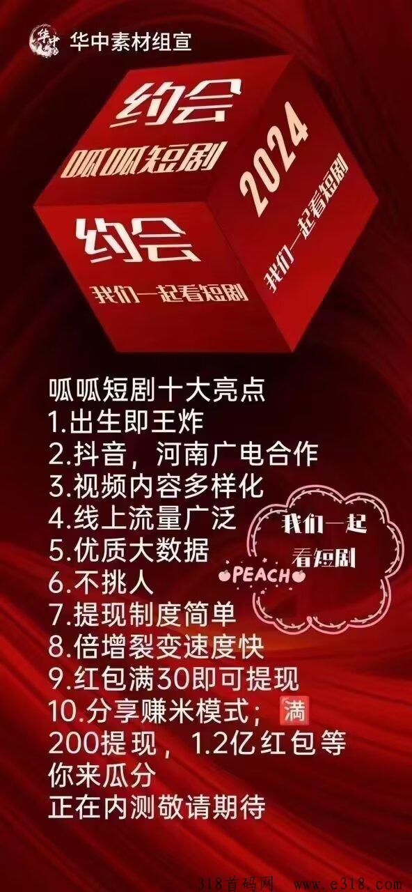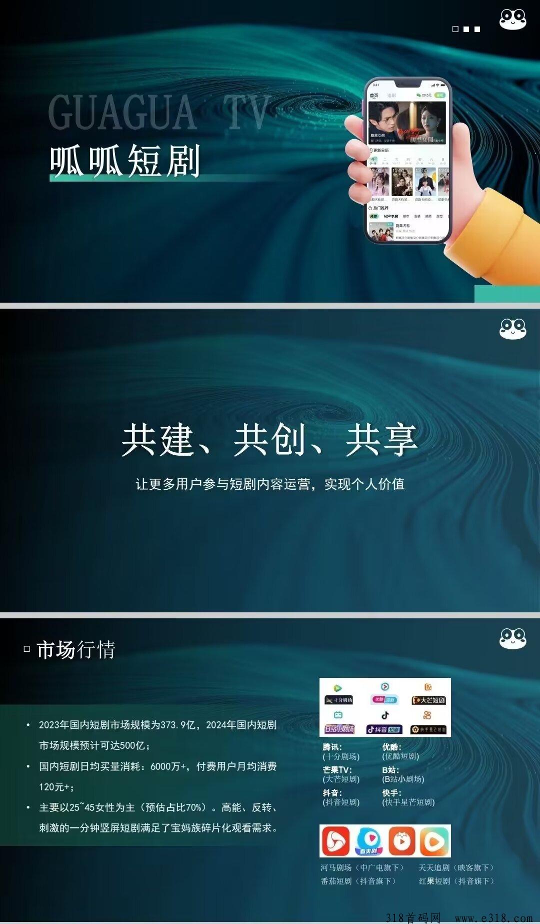 呱呱短剧全网线下市场如火如荼预热中,本社区已对接数十团队,上线倒计时,共抢 1.2 亿虹包,不一样的短剧,不一样的生态系统,2024 年王者短剧项目,尽在呱呱短剧!呱呱短剧必在全网市场短剧项目中脱颖而出,名列前茅,米虫大公司力推项目,出道即巅峰!
