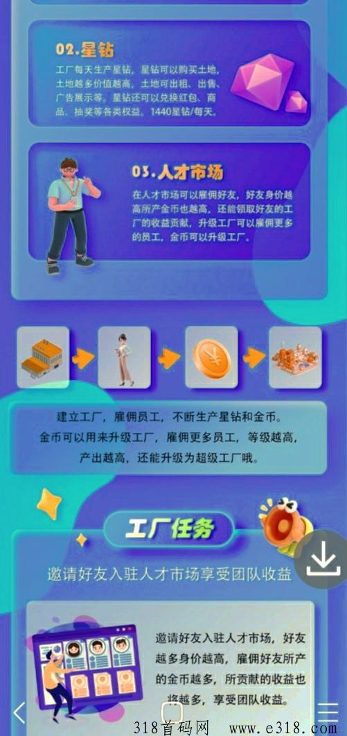 去玩生活免费撸,用户注册简单实名,平台赠送礼包是永久工厂,10名员工。