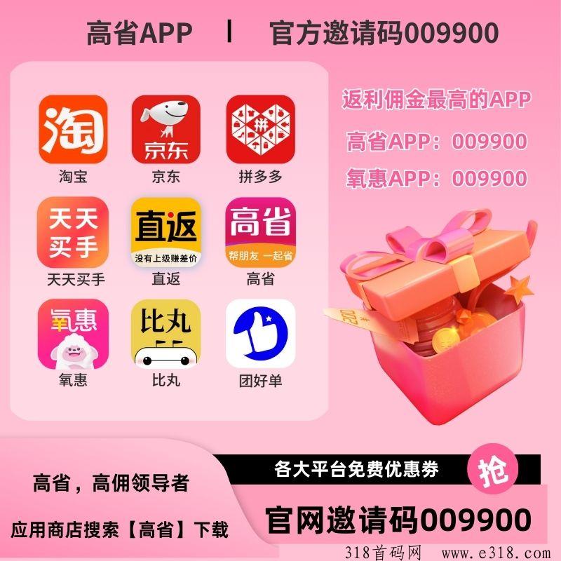 【高省】APP是一个自用省钱佣金高,分享推广赚钱多的平台,百度有几百万篇报道,0投资,0风险、高省APP佣金更高,模式更好,终端用户不流失。高省APP以其独特的导购赚佣金模式,在众多应用中脱颖而出。为了更好地体验高省app,登录注册请填写高省官方邀请码【009900】。全网唯一且专属于技术指导老师。正确填写后将直接提升至2皇冠等级,并获得价值百万的引流技术推广学习大礼包。《欧阳导师》也在后台为您准备,欢迎加入高省官方群与更多用户交流。作为一款集淘宝、京东、拼多多、唯品会等主流电商平台于一体的导购返利应用,高省APP为广大消费者提供了一个全新的赚佣金体验服务。不论是手机应用宝、苹果Store、华为、oppo、vivo、小米、三星、魅族等应用商店均可搜索“高省”APP 开启社交电商之旅。