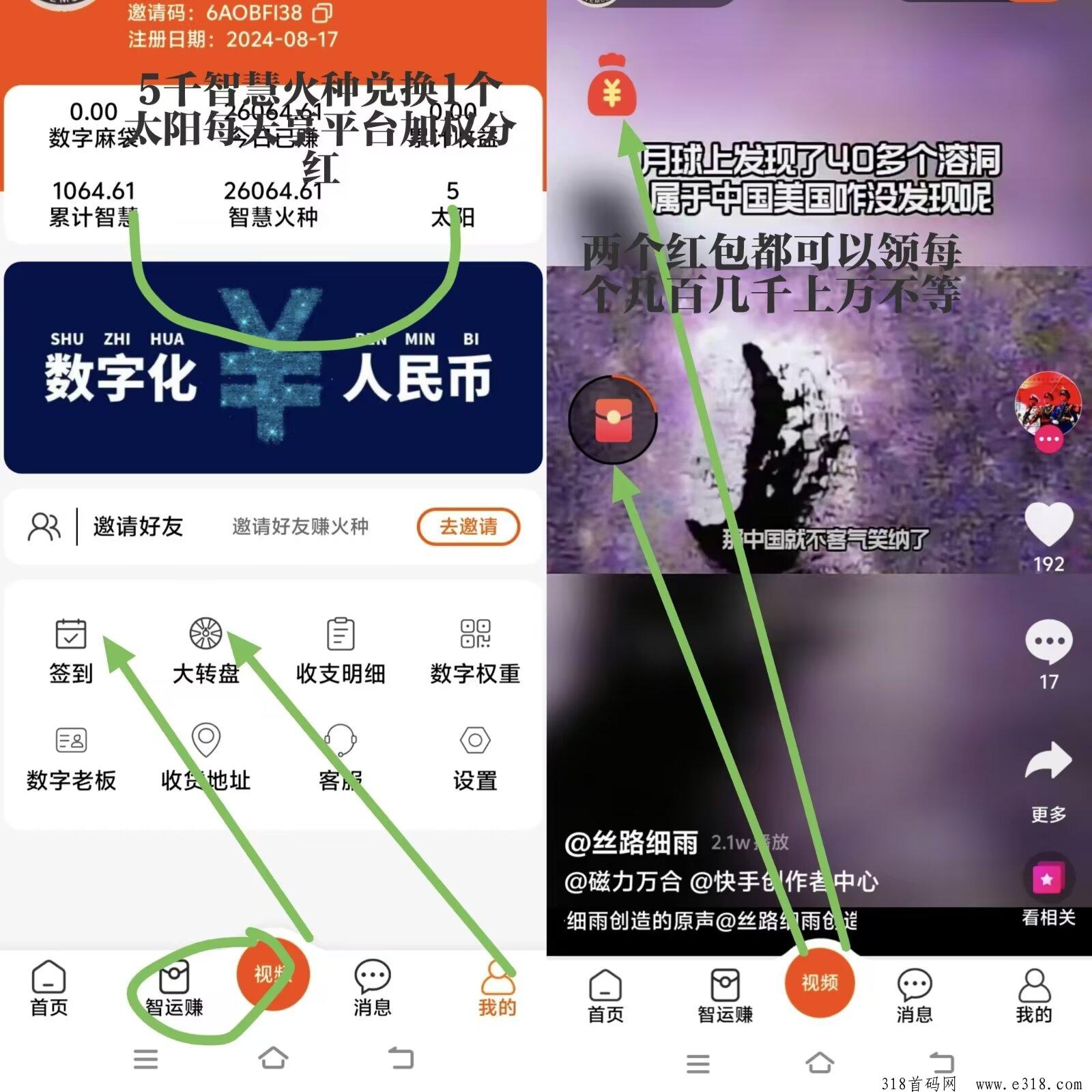 1、每天看广告领红包+签到+大转盘,可获取智慧火种