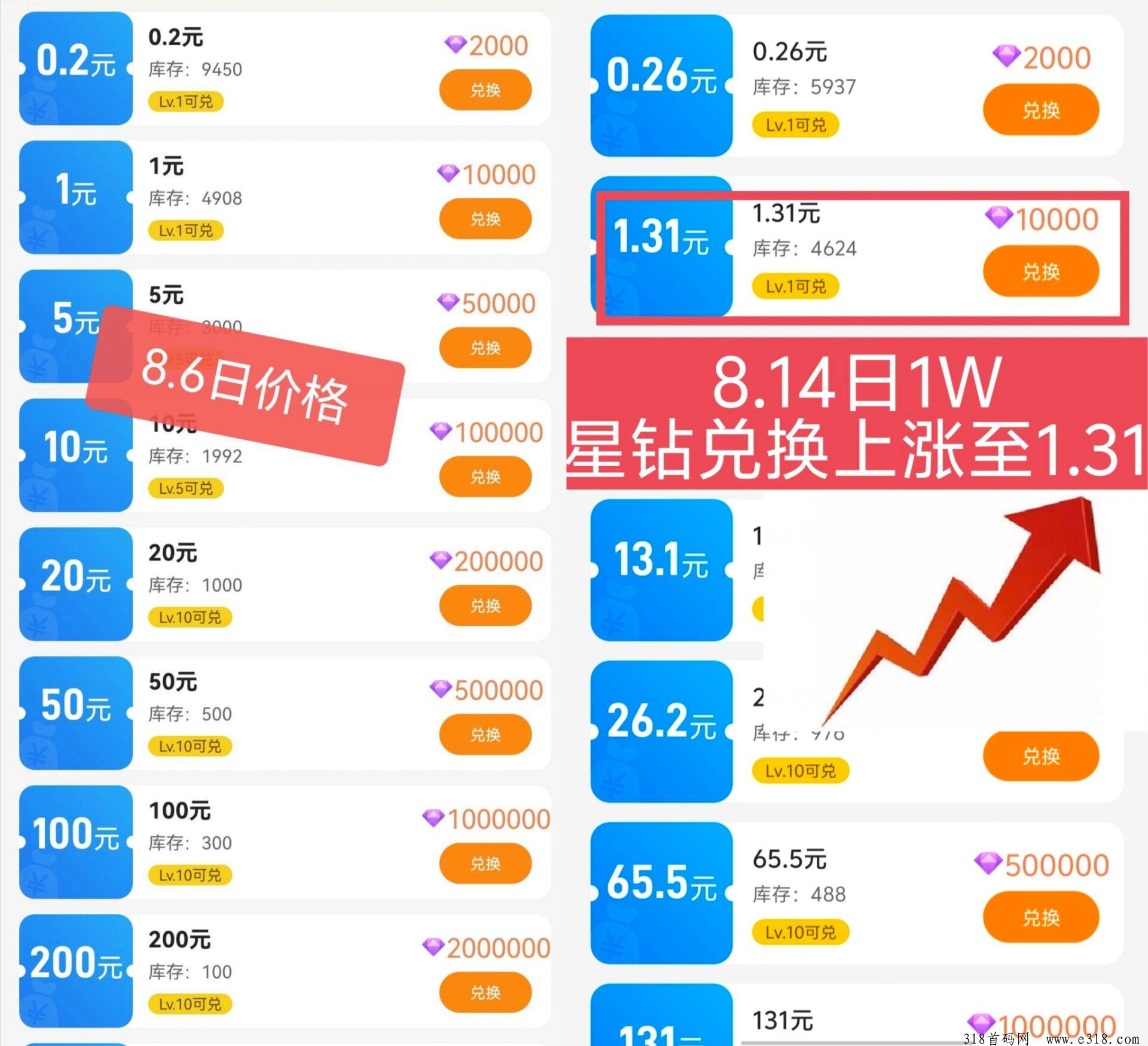 星钻价格每日涨幅的。目前一个0.0001元,今天预计涨幅到0.00011