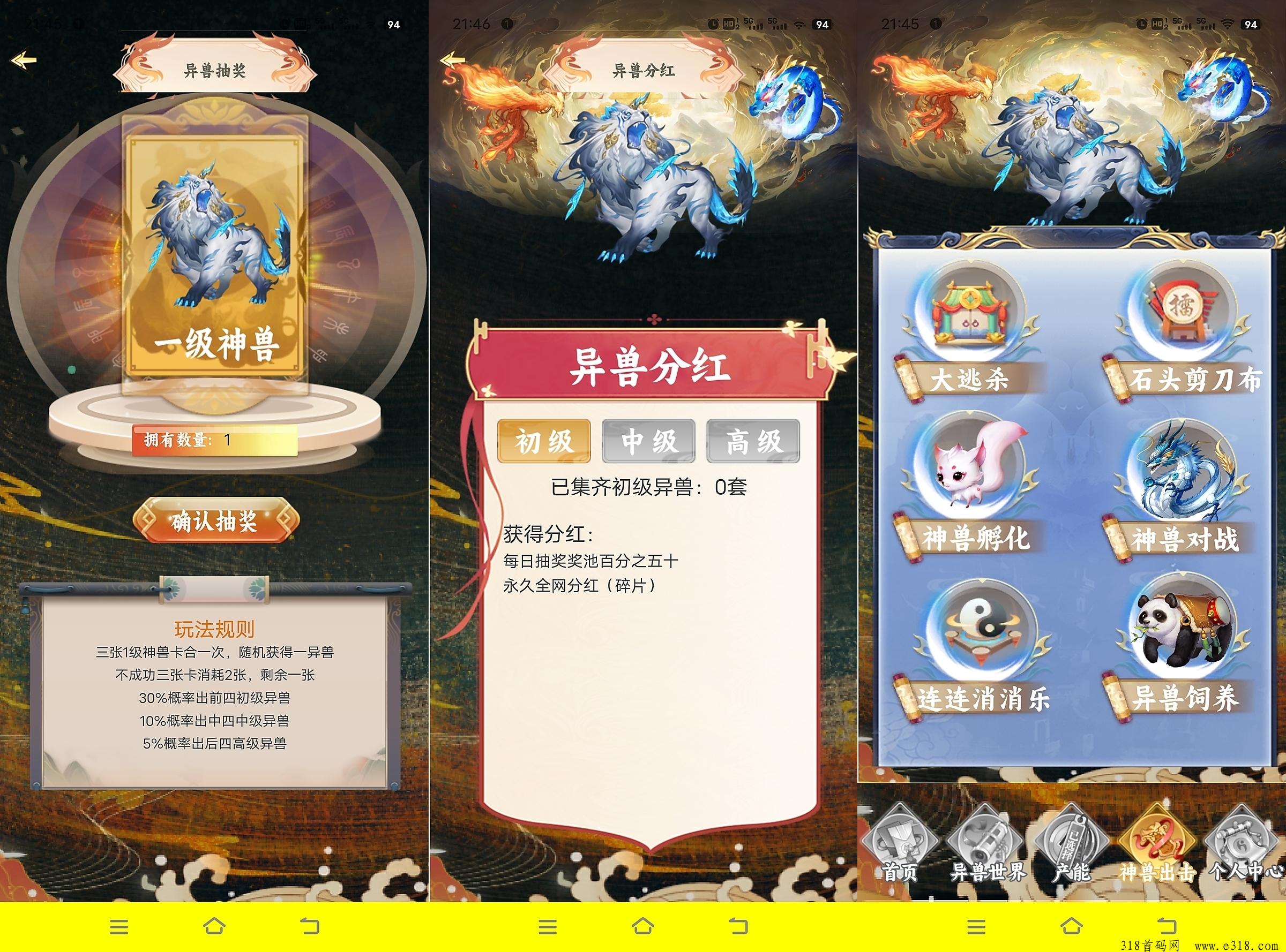 二、合成异兽,异兽抽奖(3张1级异兽合成高级异兽)