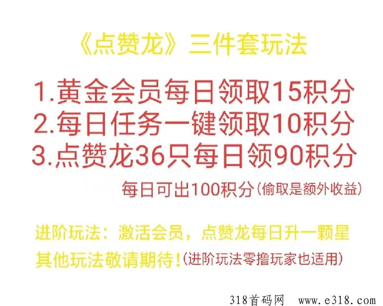 点赞龙目前玩法非常简单,只需给龙升星 星级越高产出的越多,每天自动挂机产积分晚上领取一次即可。有推广能力的推广下级还可以获得点赞龙目前价格3米一只供不应求。
