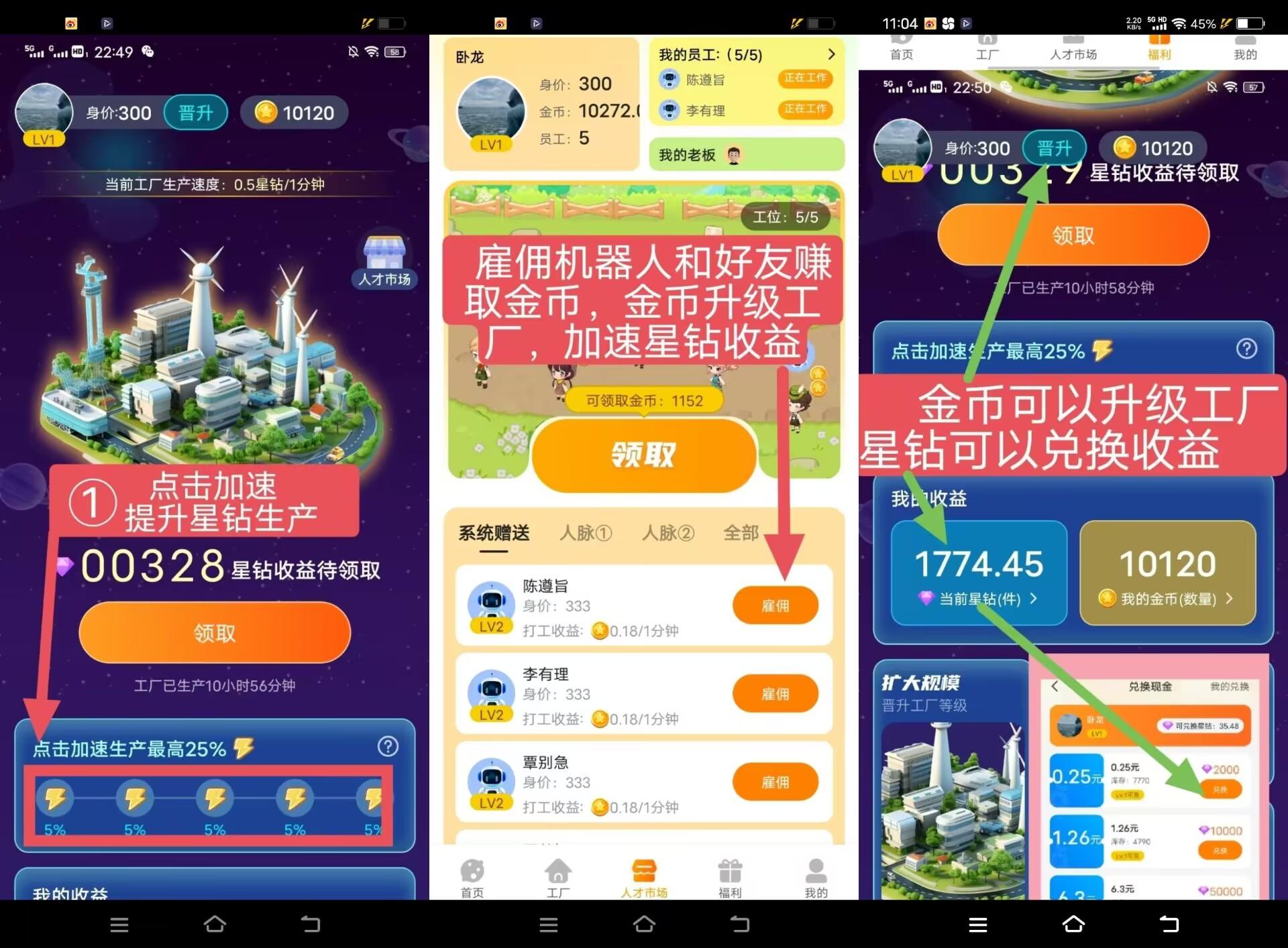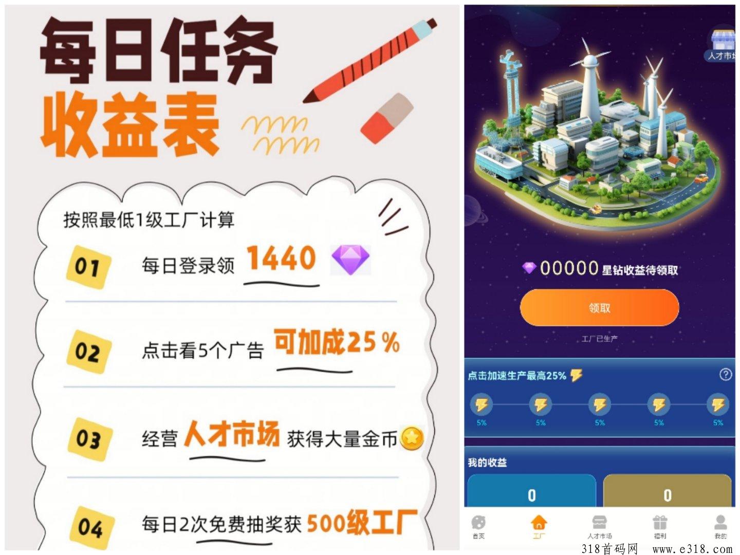 工厂产星钻:星钻可以兑换红包、商品、游戏充值、人脉圈竞价、收益分成等。