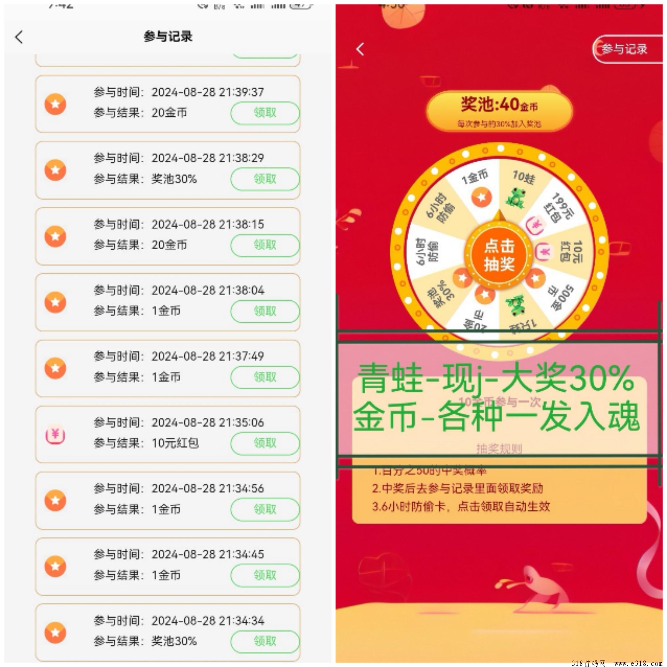 会员每天免费偷取10次-每次大概0.5-30金必,转盘-现j-池奖-青蛙-一发入魂经常出现