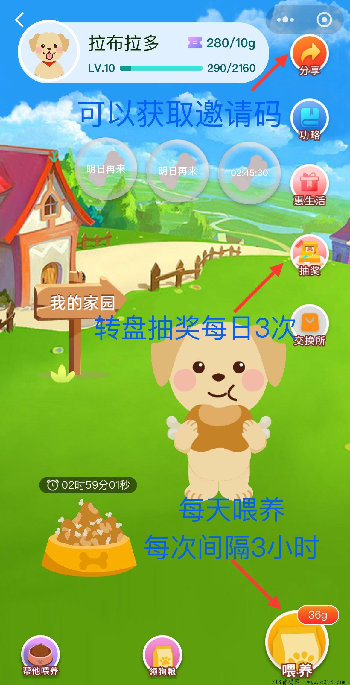 每天完成转盘抽奖,喂养宠物升级、奖券抽取积分、积分抽奖现金池(0.2-1元不等)