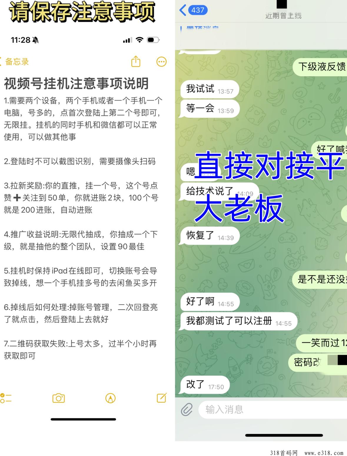 开通视频号的微信(多号多收益)(准备两台手机需要对着扫码登陆)电脑也行
