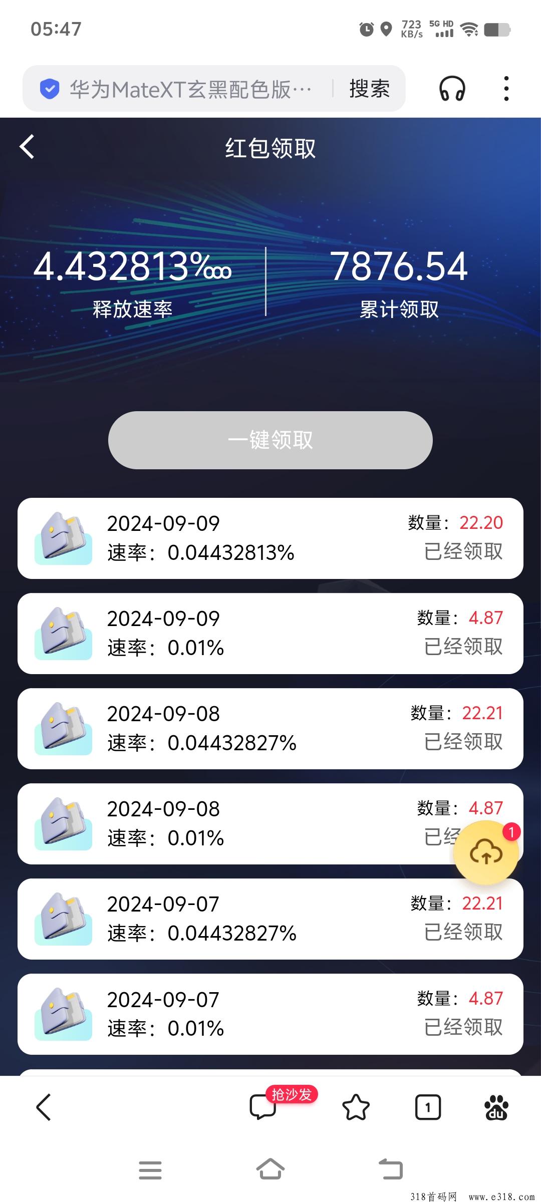 我们的释放机制独具特色。100个释放卷起分,按照万分之4.43的比例释放释放,让您享受到实在的收益。每日到我的页面,即可轻松领取您的释放收益。