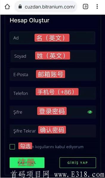 APP可以切换英文,教程是根据土耳其语言做的,大家按照图片注册后再切换英文吧