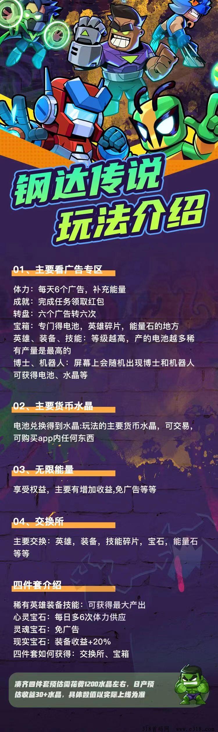 首码钢达传说,淘金模式,每天6个广告,零撸一天至少5米,钢达传说首码,(可零撸,无门槛)+角色养成(游戏属性越强游戏越容易过关,闯关越多获得收益越多)游戏创收两不误。