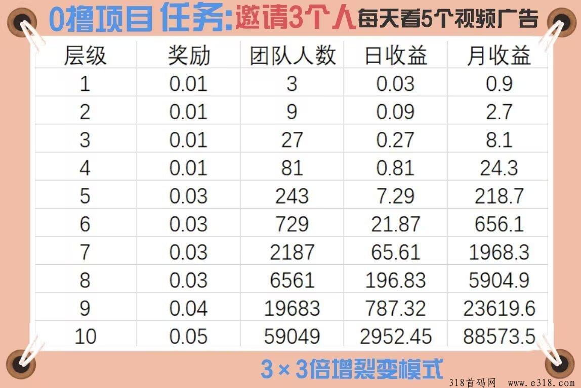 每人至少直推3个然后就会进入公排自动给你滑落下级 每天躺着收益