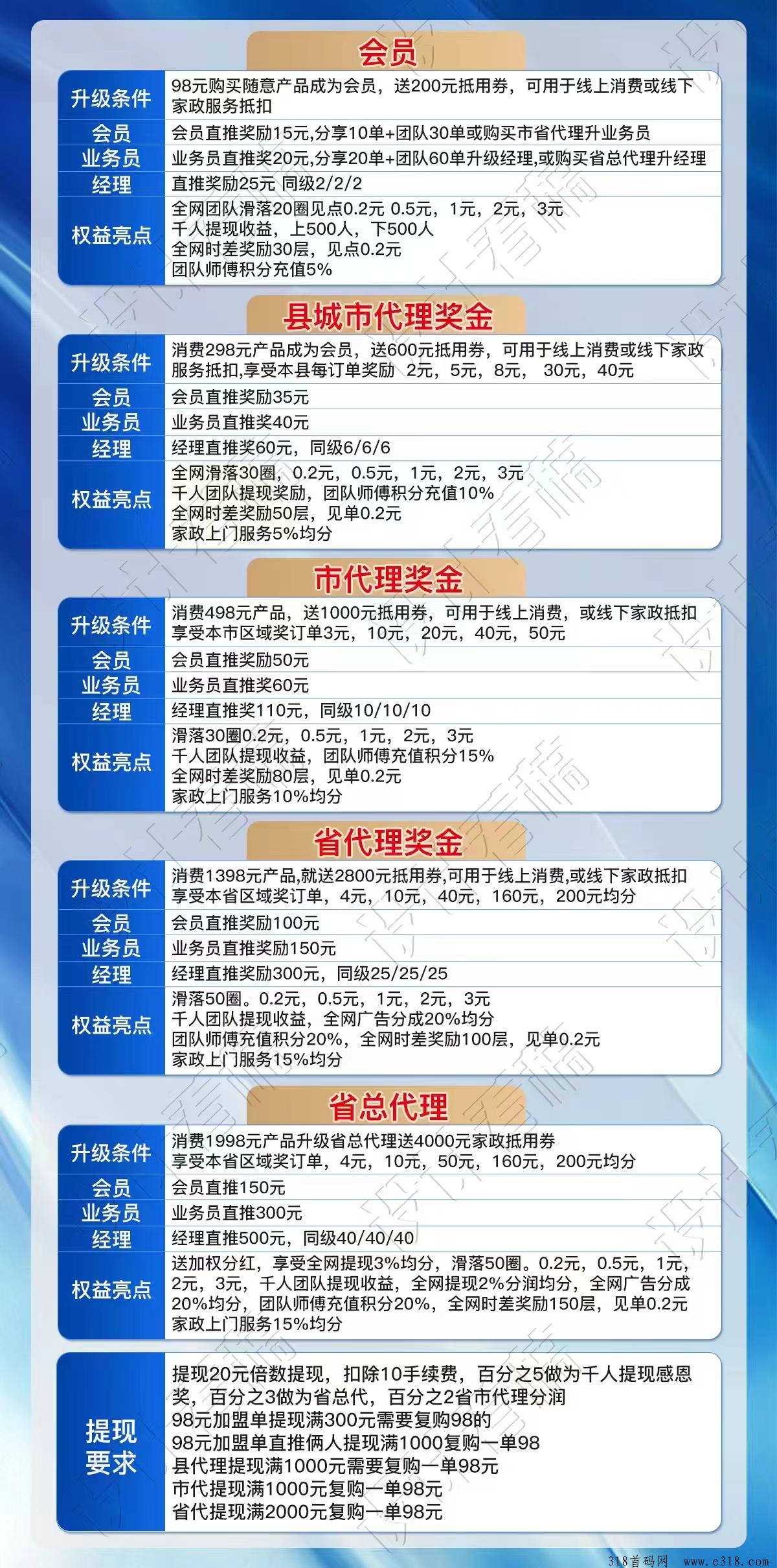 | 免责声明:合作之前建议签订合同,318首码网作为信息共享平台无法对信息的真实性及准确性做出判断,不承担任何财产损失和法律责任,若您不同意该提示,请关闭网页且不要在本站拓展任何合作,否则造成的任何损失由您个人承担。 | |