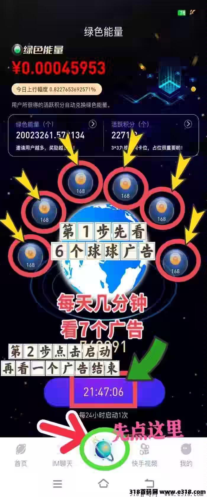H 省心省力 每天花几分钟看7个小广告激活则可 : 自动产能量值数字资产 不耽误你发其它的财
