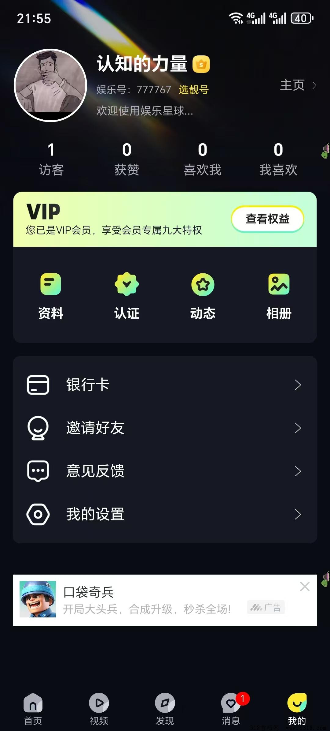 娱乐星球,日撸3元,10元开VIP全返不用看广告,APP丝滑流畅,功能强大,里面可以直接加好友聊天建群,可以刷短视频,内置十几款小游戏强力内循环