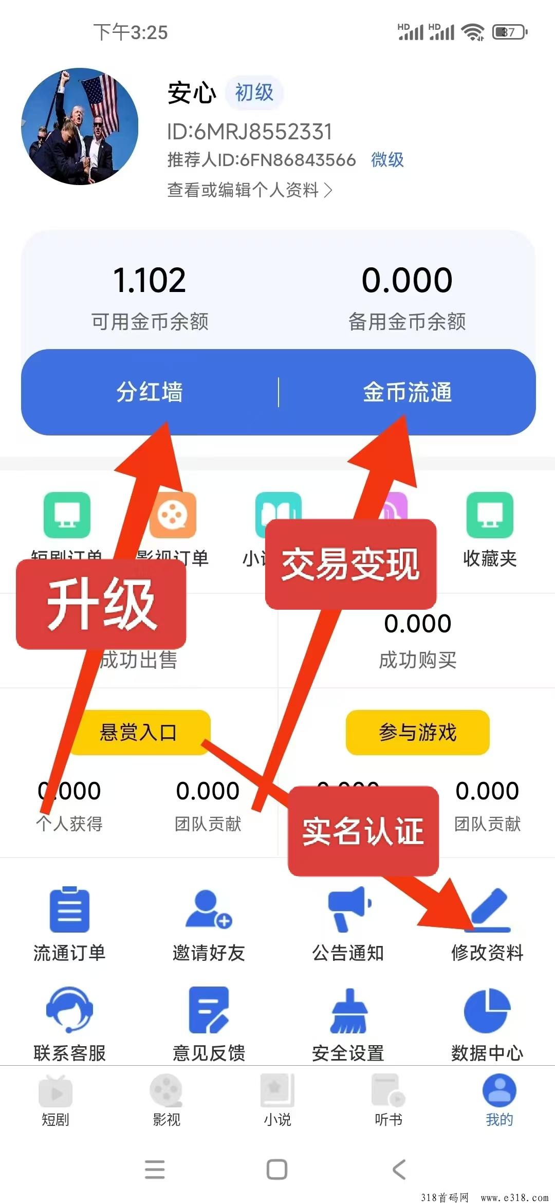 【全民剧点】神零撸,1金币=1元,可以直接提现,可以直接市场挂卖,不保留,产出就可以卖,(实名认证或者完成一个悬赏为有效会员)