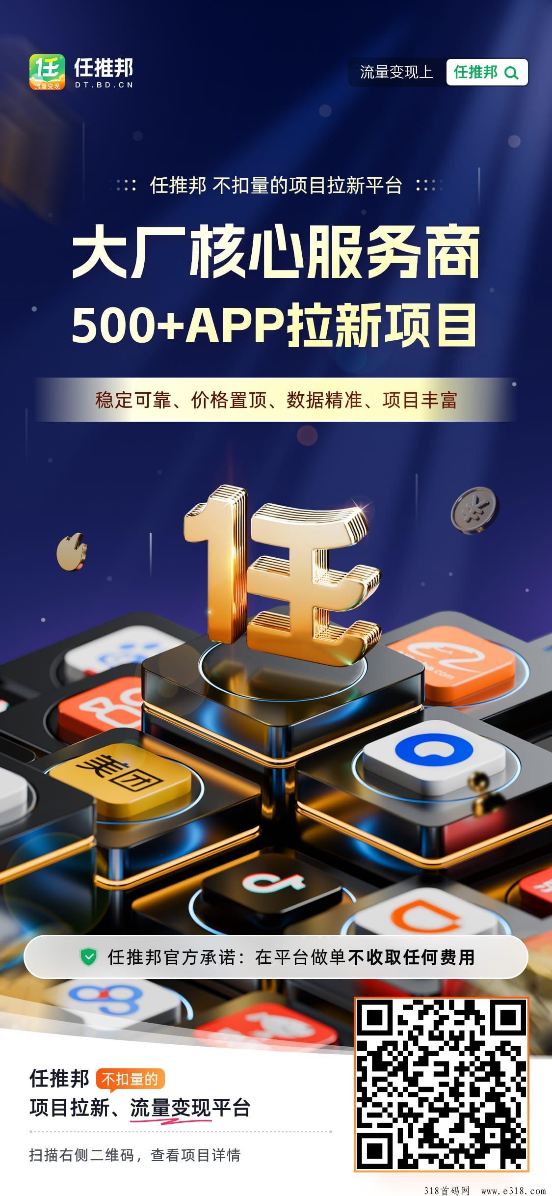 所以可以注册任推邦推广,浏览器搜索:任推邦,查询注册即可(官方邀请码942628)。平台的优势是出数据快、稳定不扣量,大平台安全有保障!!!