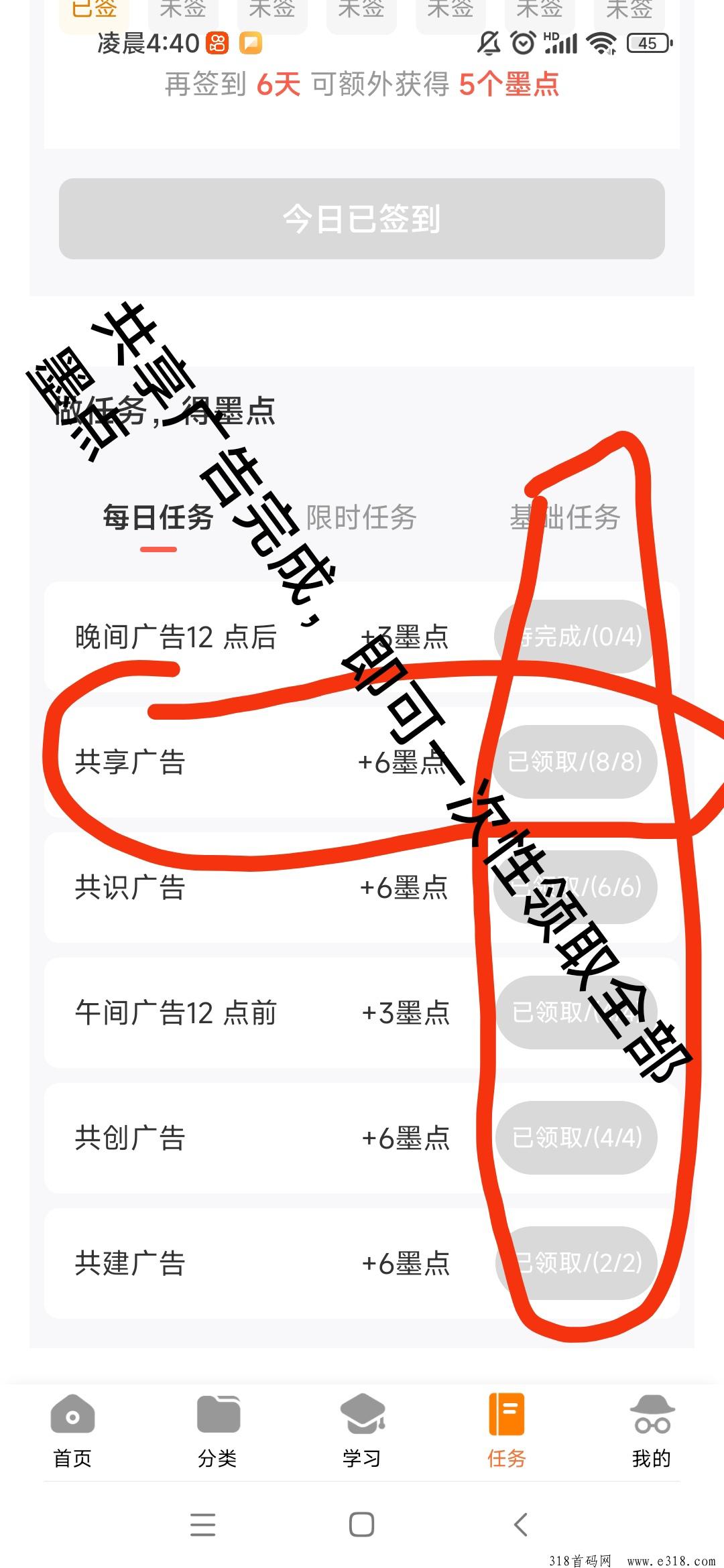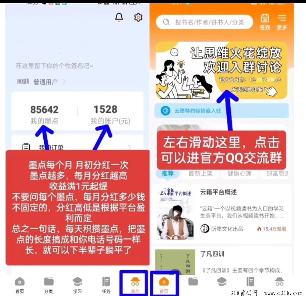 首码才出免费0撸,目前内测,用户参与平台签到、看讲书分享等可获取墨点,获得勋章等,墨点每天芬红,永久有效