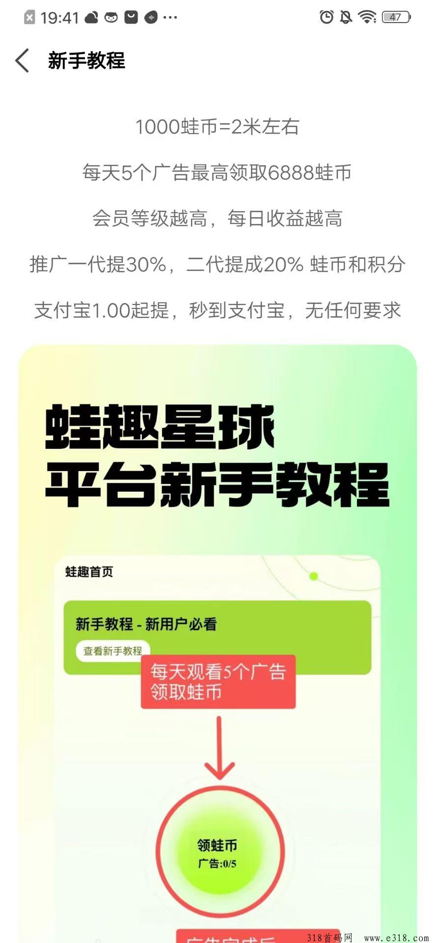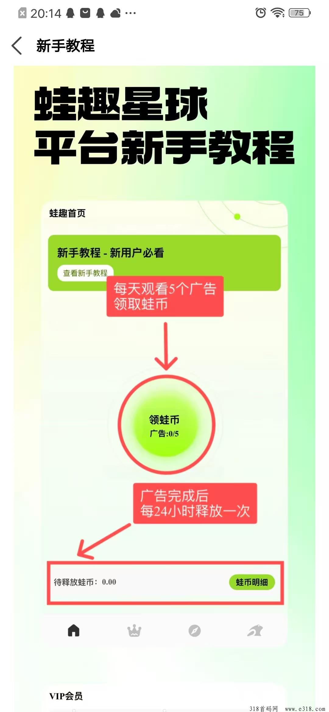 二、每天看5个广告自动领取188蛙币