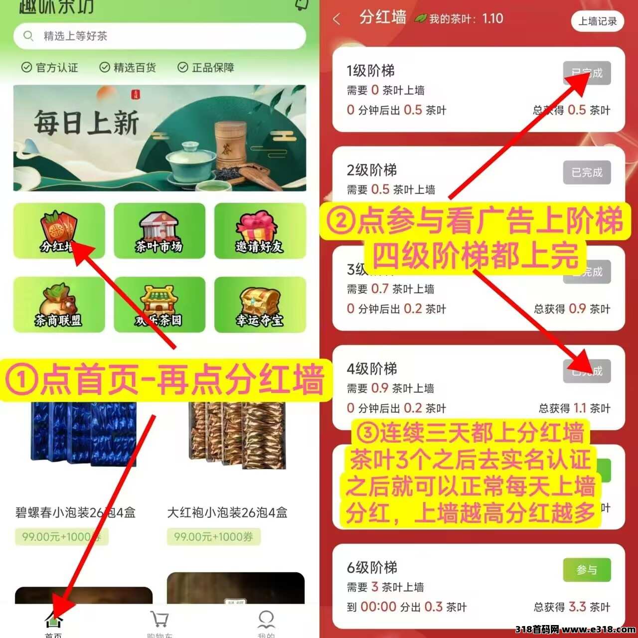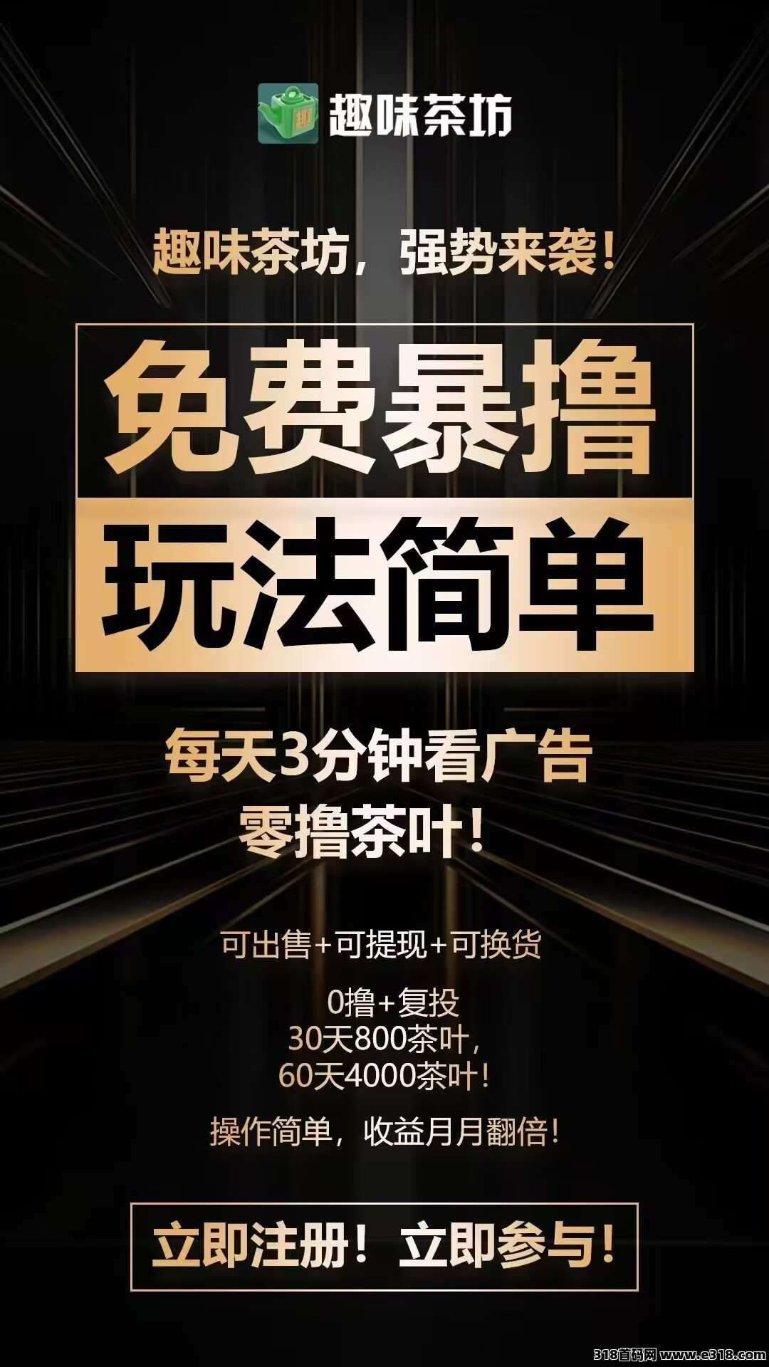 每天3分钟,轻松赚取茶叶,可出售、可提现、可换货,日积月累,利滚利。