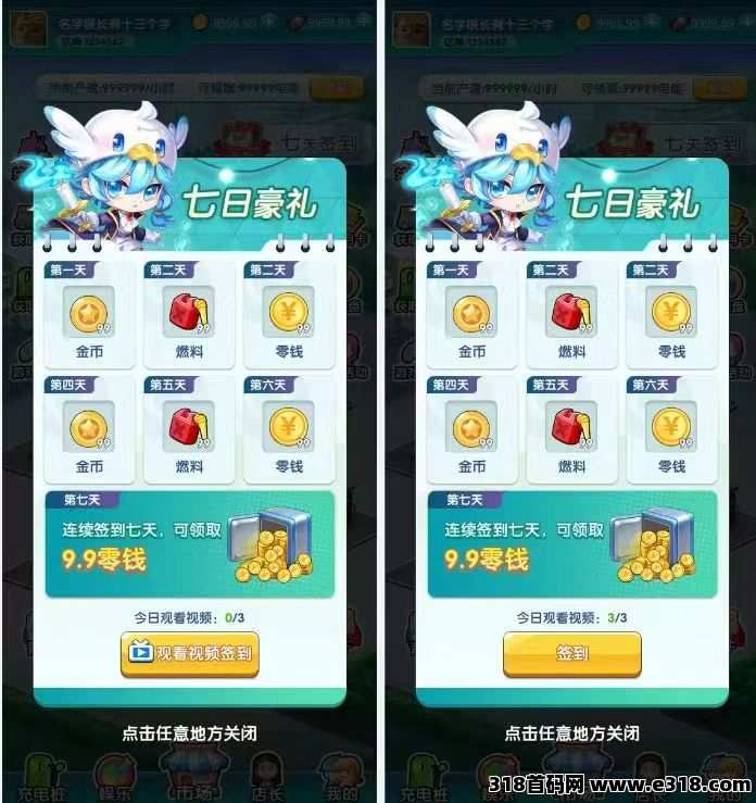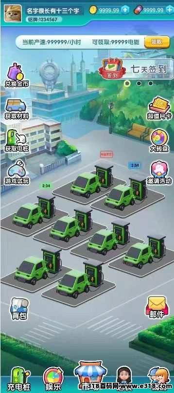 注册赠送充电桩一台,每日签到获取燃料投入充电桩产出金币