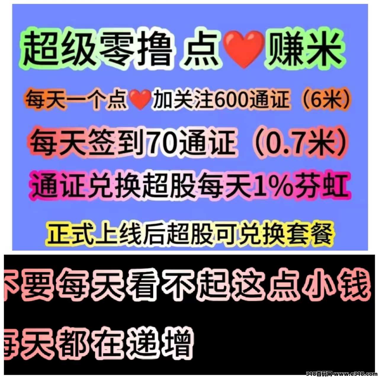 全新纯零撸简单任务,每天领取1个任务,1分钟完成提交即可,可获得1股价值6.4米! 高扶持5红包给你!!