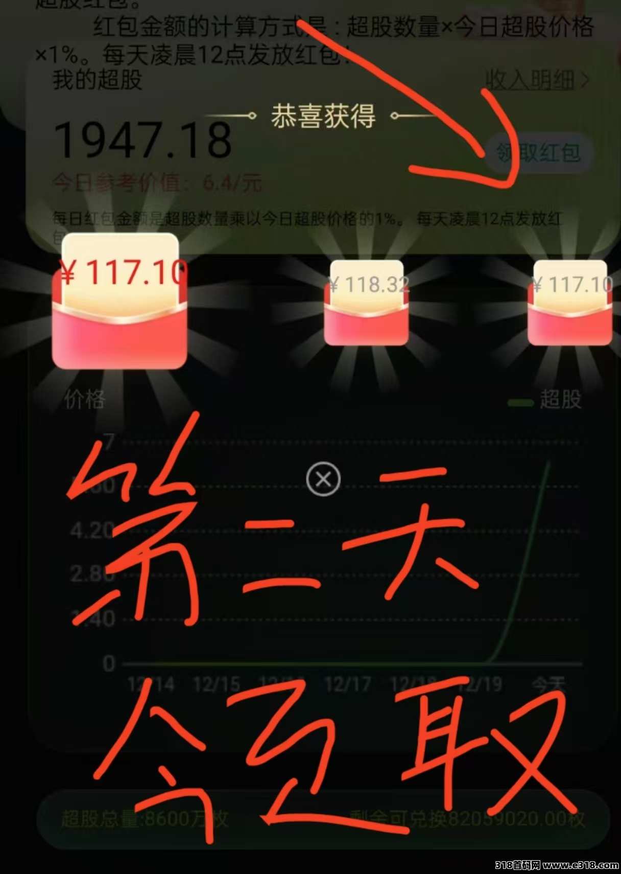 2、任务审核后获得通证600 通证和签到70个去兑换1个超股,零点后抄股页面里领红包,按超股价值的 %1 分洪!