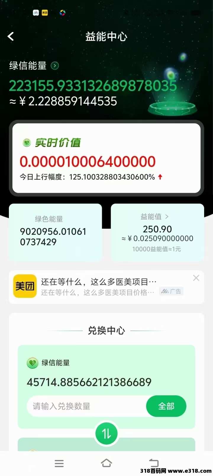 累积的益能值可是兑换绿信能量的关键!一旦益能值突破1000大关,它们就会自动转换成你梦寐以求的绿信能量。但请注意,当绿信能量池达到10万人的规模时,产量将智能调整,减少20%,所以尽早加入,享受更高效的收益吧!