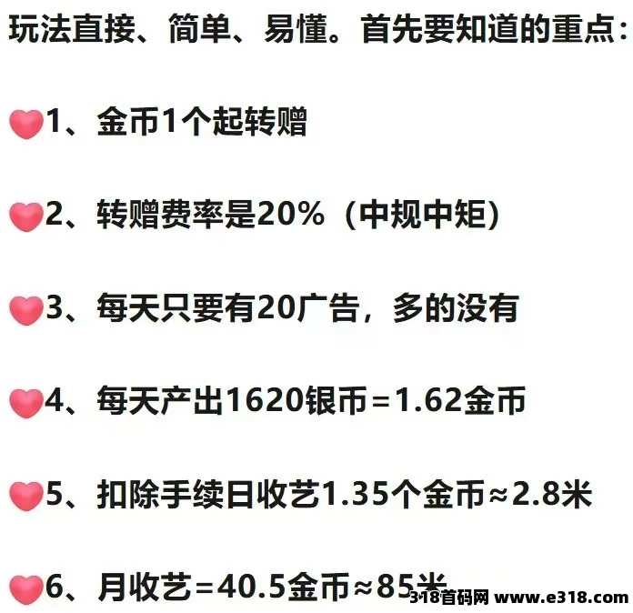 每日可观看 20个广告,初始转增手续费为20%日收益(扣除手续费):27*3*20*0.8=1296银币=1.3金币