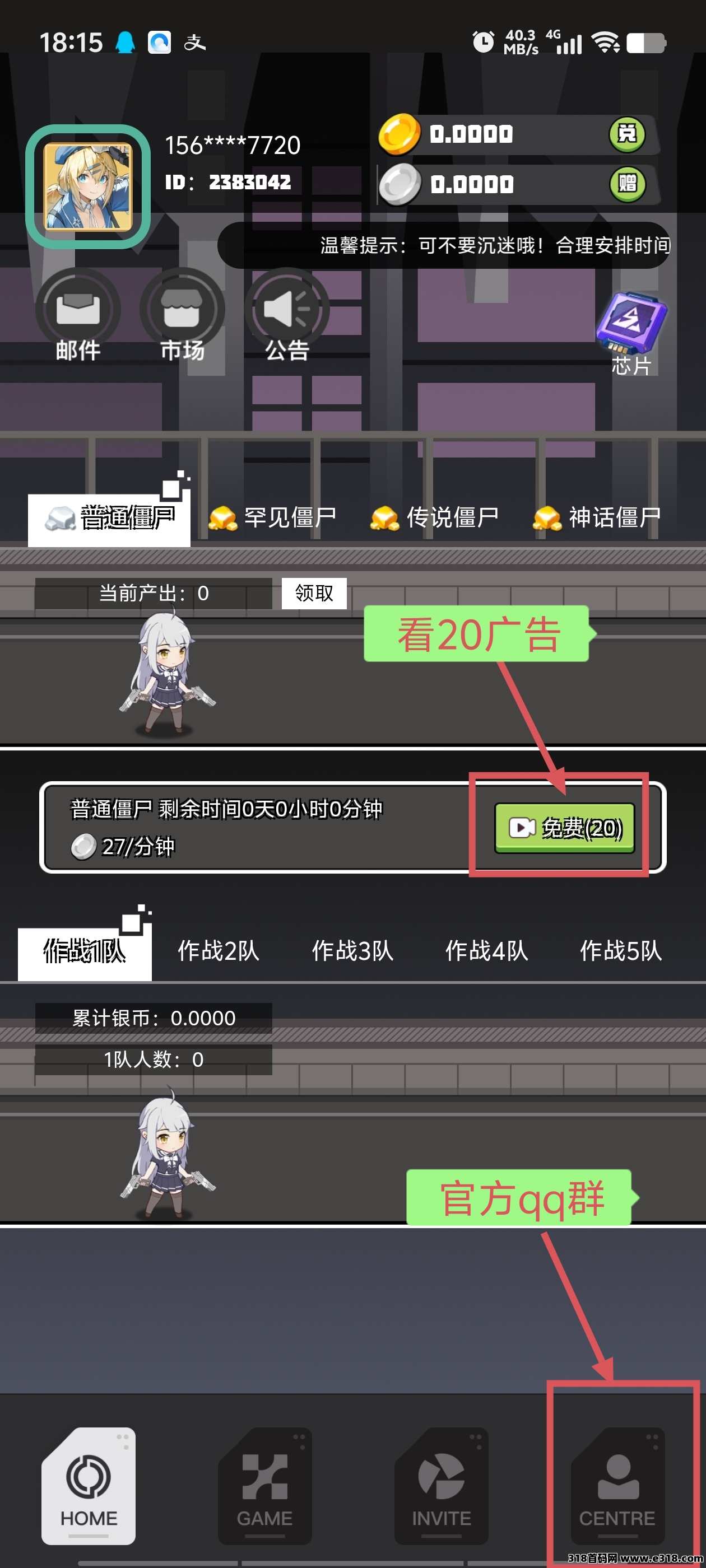 猫鼠法则模式,直推有效扶持1间推0.5(有效要求实名看20广告)零撸玩法:新用户注册实名即可获取基础战姬可通过观看广告补充体力击败怪兽产出银币,每个广告补充3分钟体力每分钟产出 27银币