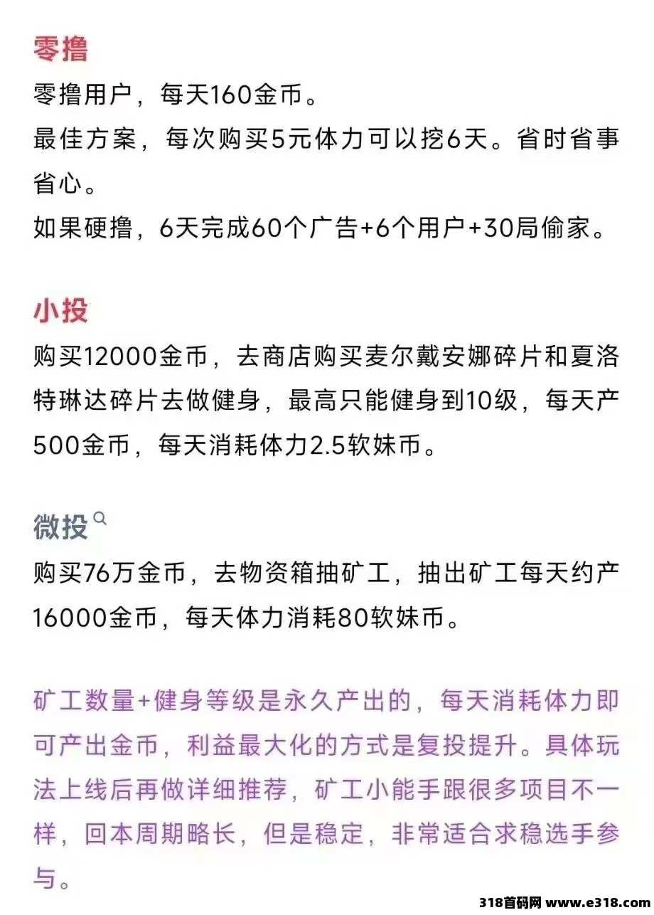 “矿工小能手”是2025年最火的零投资赚钱项目。只需扫码注册,每天看广告补充体力,挖金矿提炼金币。金币起初每个0.02元,现已涨到0.05元。一天能挖160个金币,纯零投资一天就能赚8元!这只是基础收益,过程中还有其他奖励,看十个广告一天能赚十几元!金币可以在闲鱼上快速卖出。