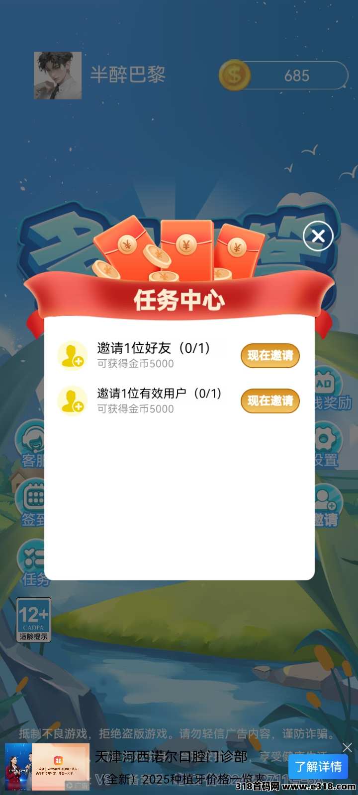 邀请新用户登录奖励0.5元