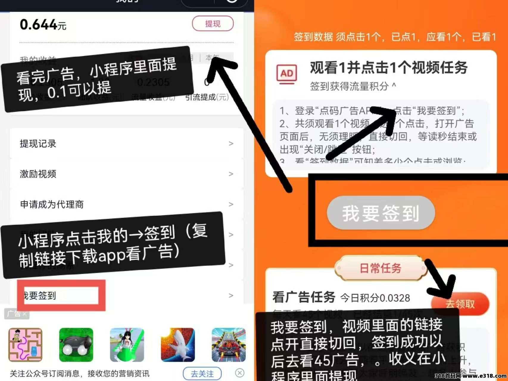 【点码小程序】看广告已挣36万亓不养鸡,一条固定4分,满0.1缇现,每日缇现不限次数,对接顶级团队长,