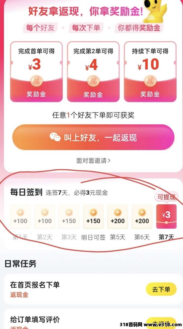 只要有人下单,就会有拉新奖励。还有个小羊毛,签到7天可以提现¥3。