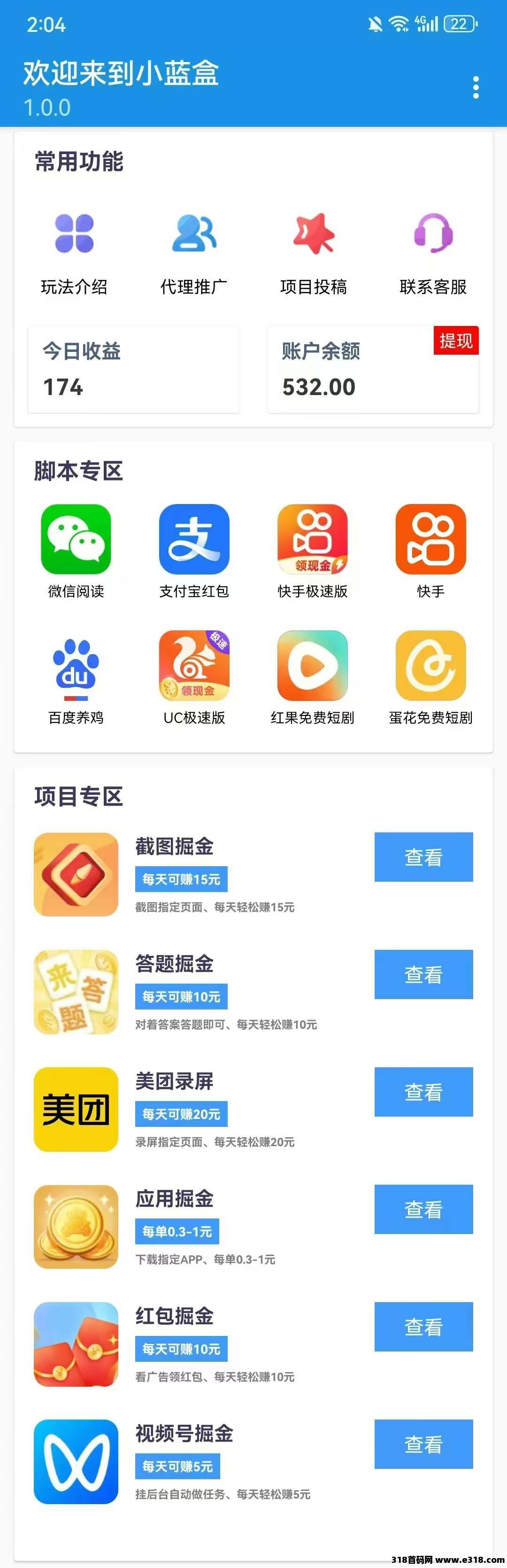 目前脚本支持多个平台,包含:筷手、百度、Z富宝、VX阅读、蛋花小说、红果短剧等,单机每天30+,可多号搞。