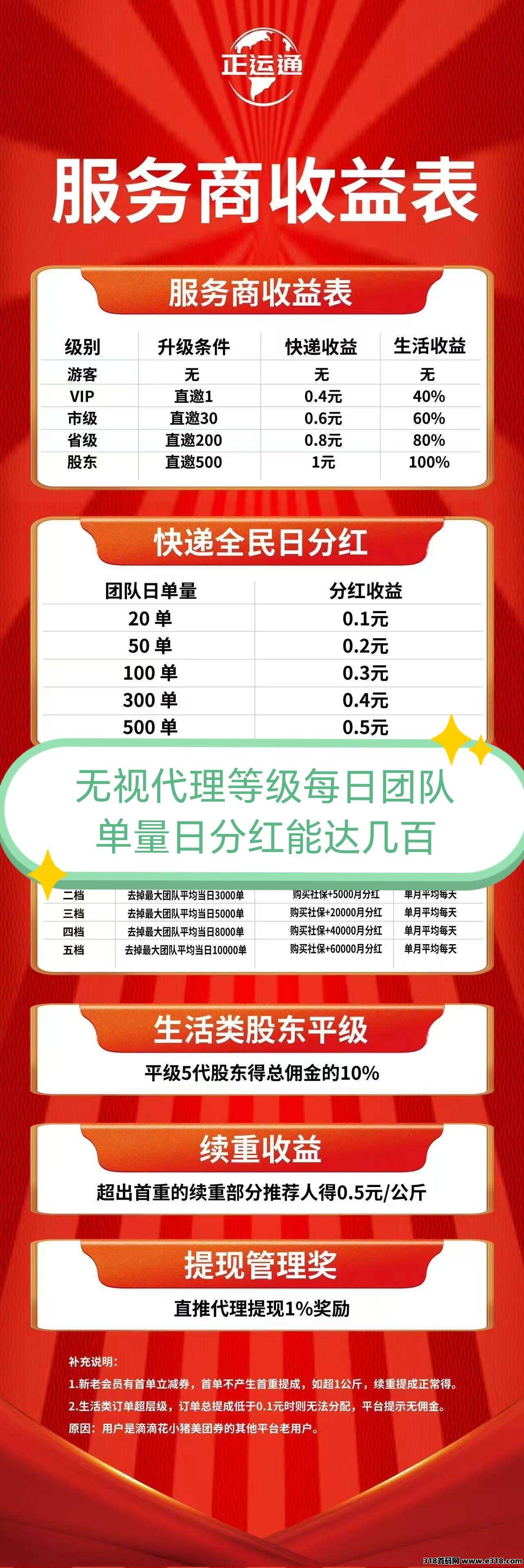 首码【正运通快递】平台上线,零成本创业新机遇!免费加入合伙人月入过万。平台涵盖了4.9元起寄快递,外卖订餐,出行打车,休闲娱乐等生活服务!重点是人人都能通过分享正运通赚大钱!不分人群,不看学历,谁都能做,市场足够大,不受任何影响波动。零元加一步手机就能开一家属于自己的全国快递驿站!推广享受无限级裂变分佣非常暴力,努力推广一个月佣金拿到你手软!是其它网赚项目没法比的。一般项目只有两级分佣这个是**分佣!比如你只推广了十个好友,这十人又裂变一万人,一万人又裂变两万人,只要他们有快递订单,你就有佣金收益,这也是我推广的原因!还能得团队每日**!其实寄快递是生活必不可少的一部分。正运通这个平台,4.9元起快递发全国,主流快递公司自由选择,价格透明,支持比价下单,自用省钱,分享躺赚!分享好友寄两件就得五元!每单还有佣金奖励,有的一单佣金能达到十几到几十,那么团队一千单呢?一万单呢?加上团队订单每日**,再加上订餐,打车等生活类佣金说推广月入过万真不是在夸大宣传!行动才有结果2025最强副业,有团队的更是如鱼得水!对接大小团长一起赚钱!微信扫码收藏使用或添加到桌面使用!点击首页左上角代理入口关注公众号可以进入自己的代理后台!