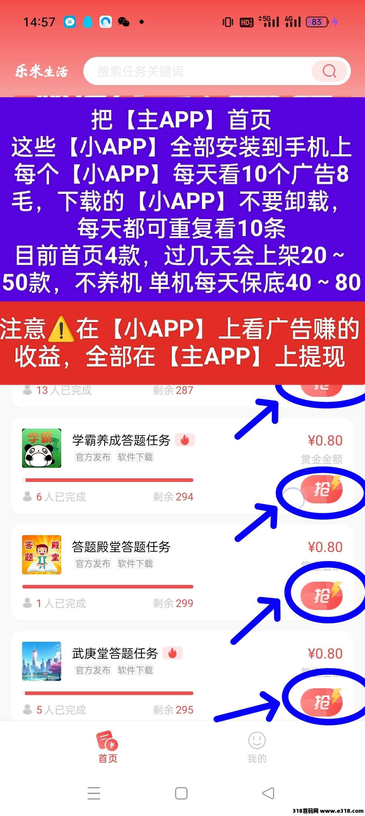 在APP首页下载的几款小APP不要卸载,第二天每天可重复看,一个APP每天10条广告8毛,下载的不要卸载【浏览器扫玛 先注册帐号,再点击下载APP】