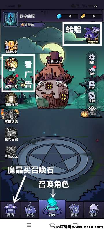 二、每天补充魔力值6次(看广告)角色才能产出魔晶