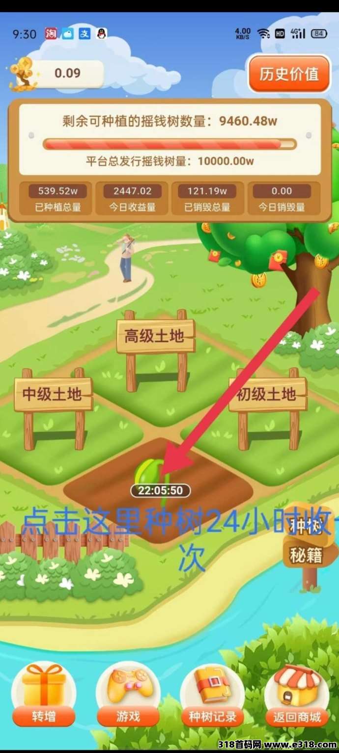 注测简単实铭不扫脸,而且还能轻松获得100颗摇钱树,这相当于一个永久旷机《母鸡下蛋鸡永远在吃不完的蛋》,每日利率高达0.1%,一直帮你产出并变现。每天任务仅需一秒完成,通过进入app主页,点机绿色的树进入土地开启种树点机全部种入,间隔24小时后收取任务就算完成了。每天重复操作形成滚雪球的效应。