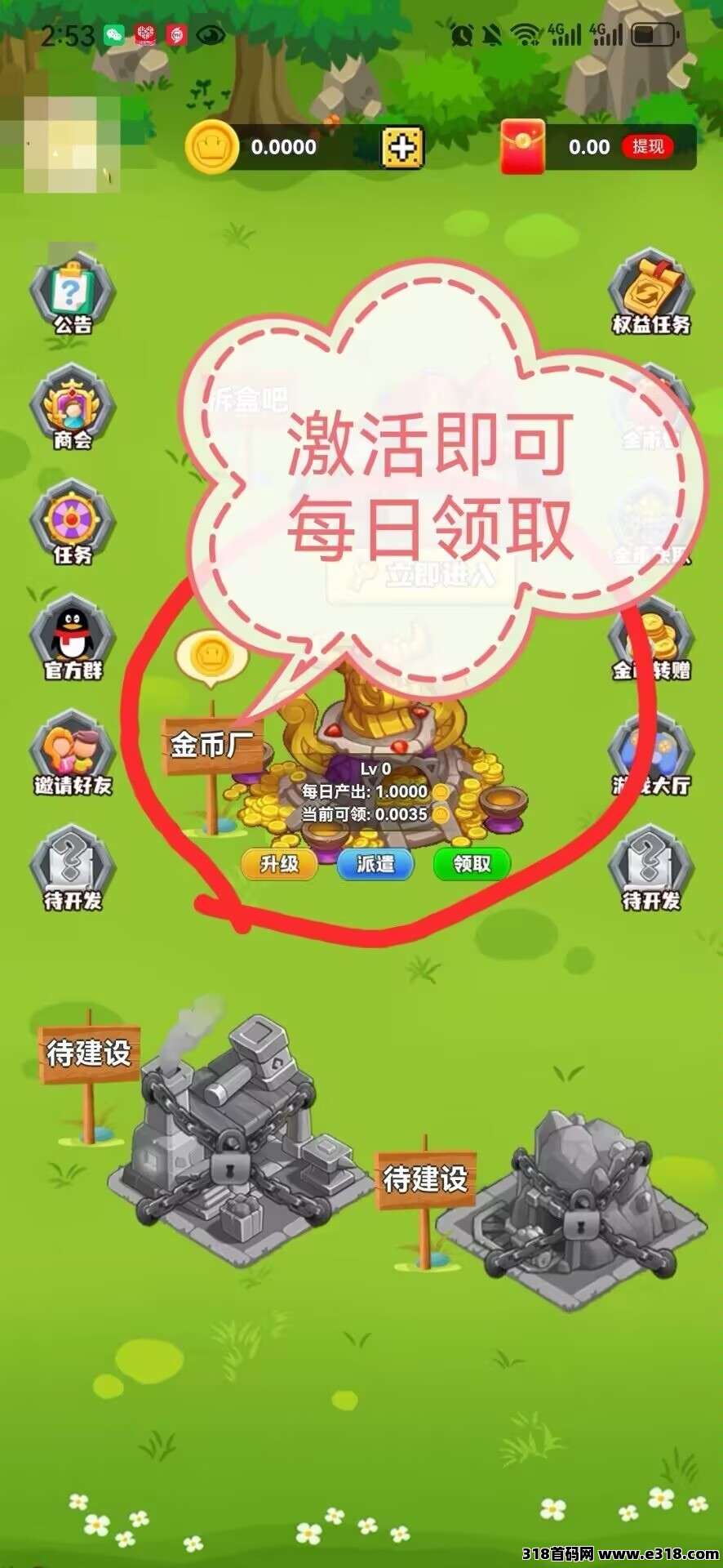 每日邀请好友累计拿3金币,下级首次升级工厂拿5金币