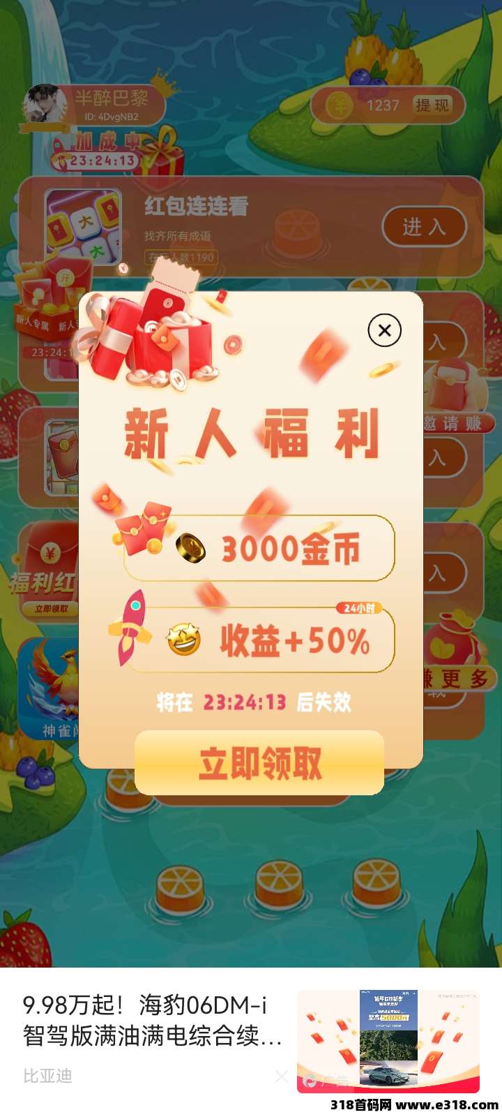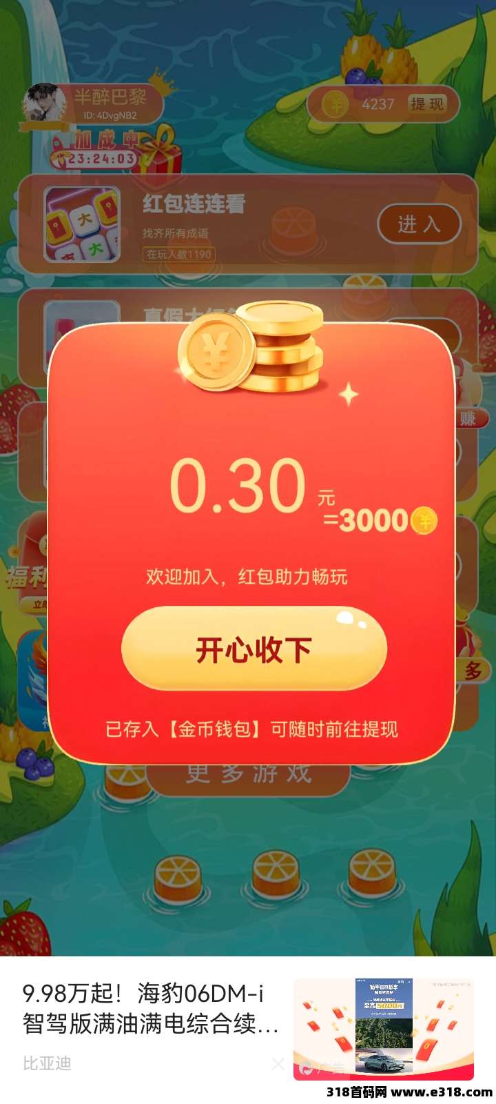 看广告0.1-1米。满0.2米提现