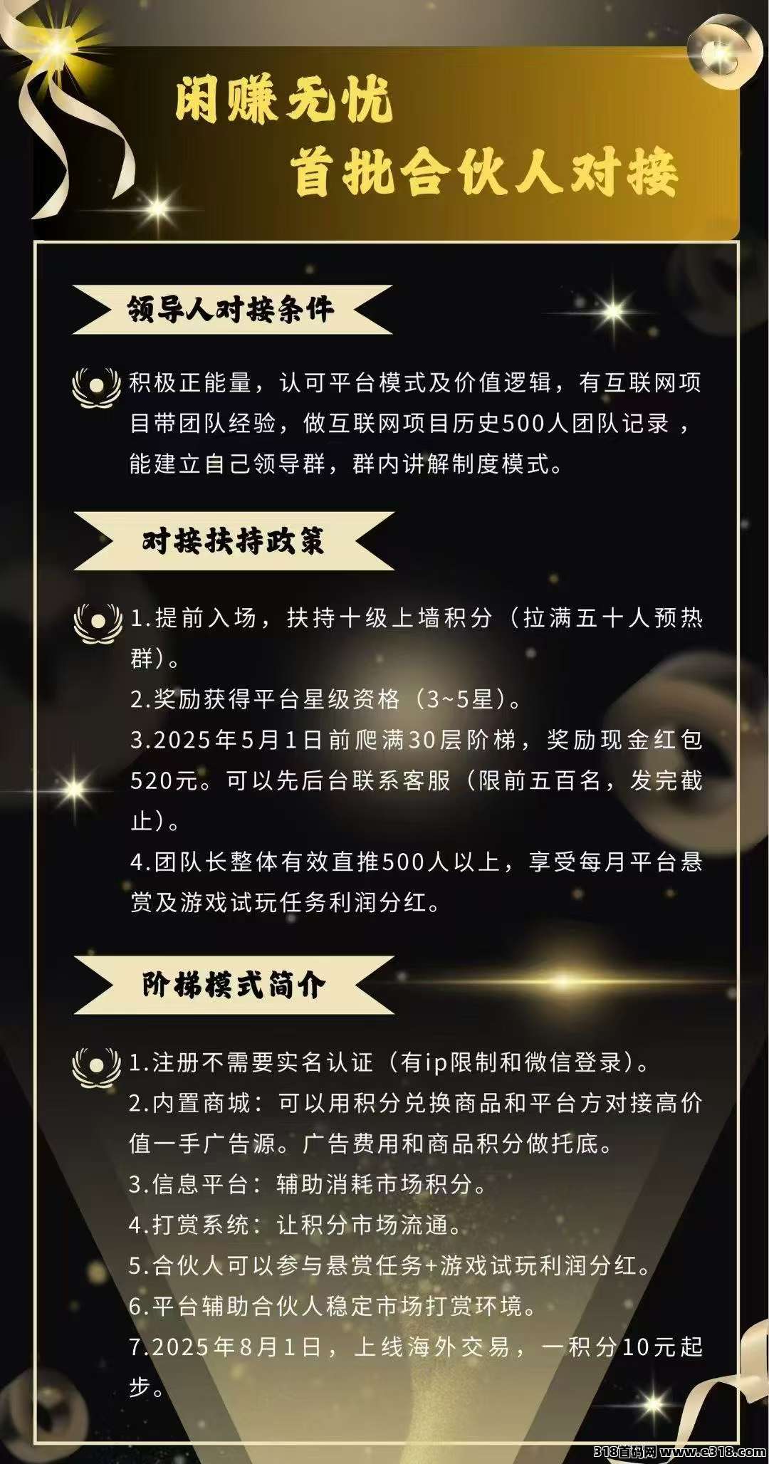 | 免责声明:合作之前建议签订合同,318首码网作为信息共享平台无法对信息的真实性及准确性做出判断,不承担任何财产损失和法律责任,若您不同意该提示,请关闭网页且不要在本站拓展任何合作,否则造成的任何损失由您个人承担。 | |