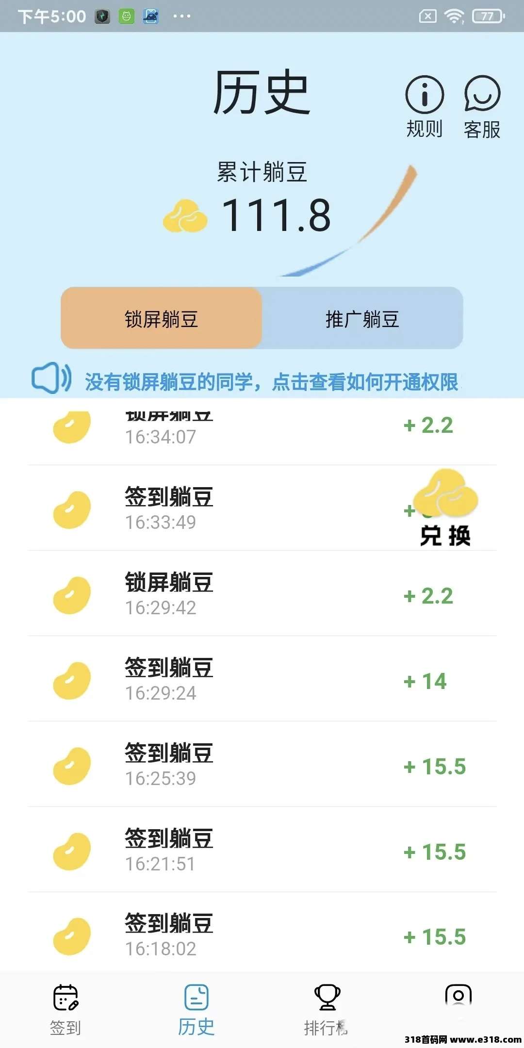 主要收益在签到栏里面的签到得躺豆,每天把这20次完成了就差不多了